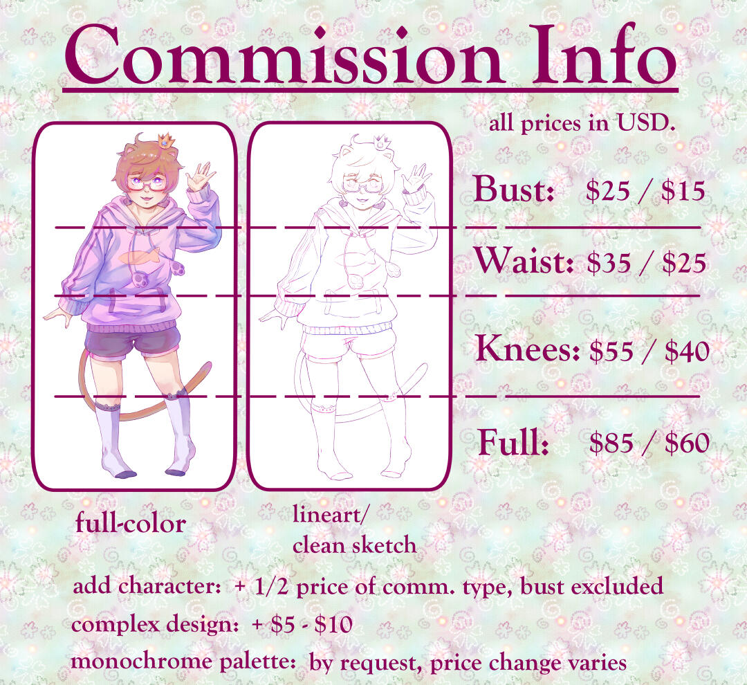 I am revamping my commission info here but feel free to message me on socmed to ask about specifics in the meantime!